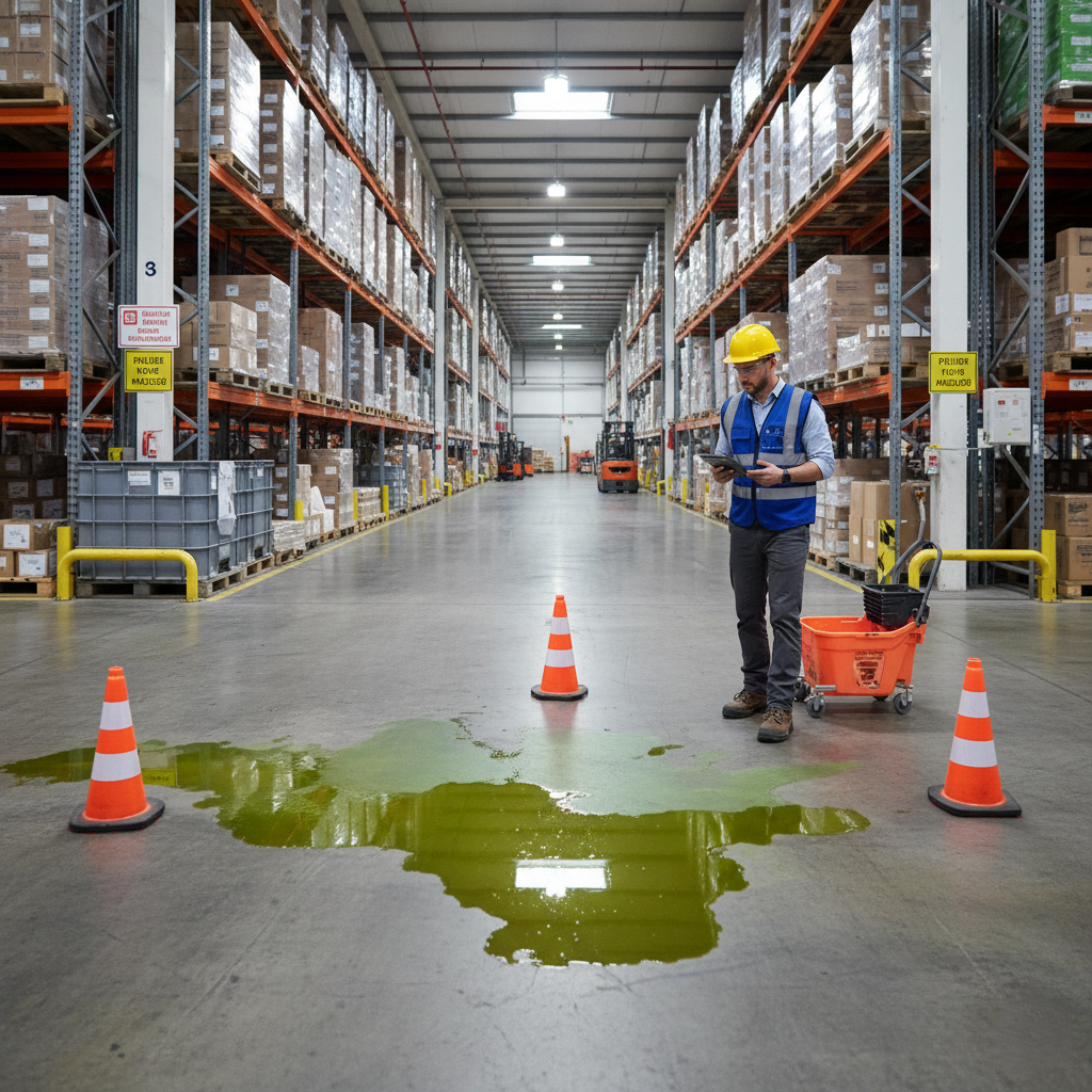 Workplace accidents from slips and leaks.