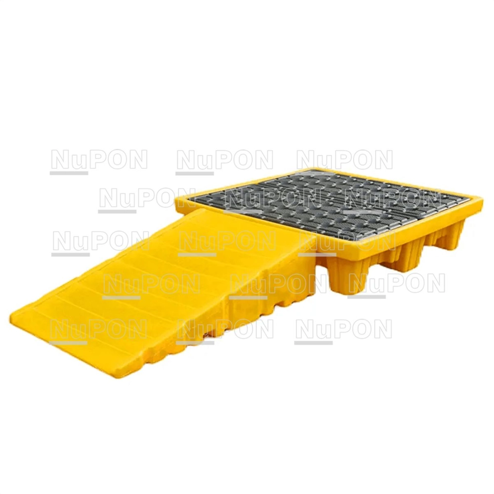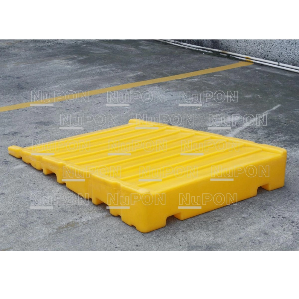TP001 is suitable for single barrel, two barrel, and four barrel pallets, with a height of 150 millimeters, made of linear low-density polyethylene LLDPE.